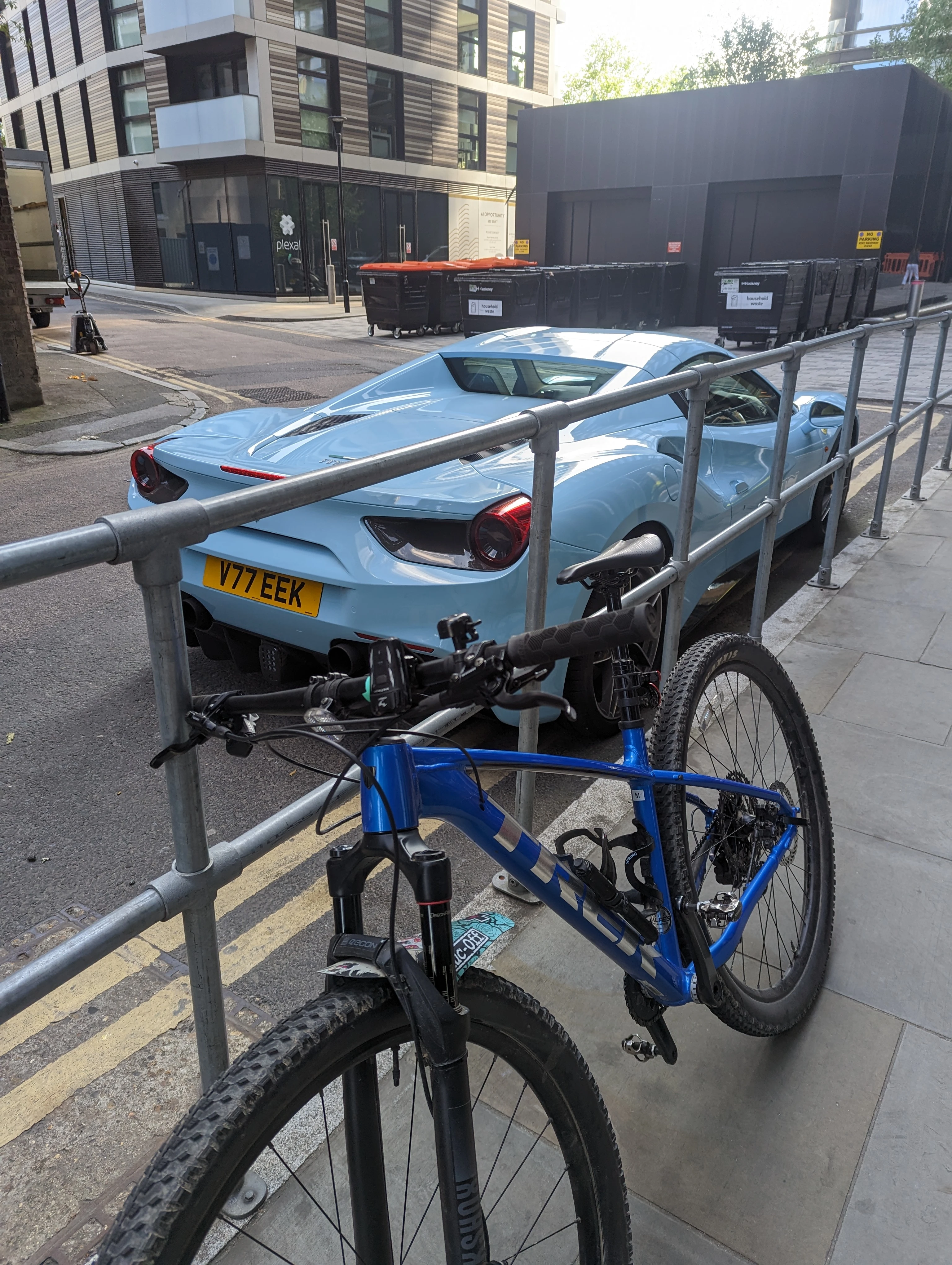 沒錯,倫敦單車失竊率惡名昭彰,我如果到鬧區買東西一律上兩副機車大鎖,有一副甚至是從台灣帶來的,找過英國鎖匠幫忙打鑰匙他們還跟我說,欸你找遍整個英格蘭都沒辦法找到人能解開這個鎖。扯遠了,當單車放在家時,我都是放在二樓的陽台,剛開始在家還會鎖車,但不知道從什麼時候開始,我不再鎖車。我們這區其實相對安全鄰居看起來也都是正常人,對整個社區非常放心。